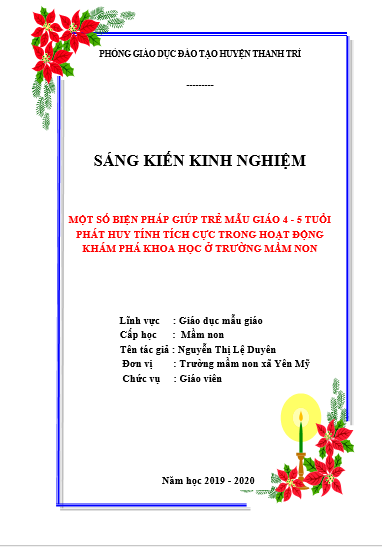 MỘT SỐ BIỆN PHÁP GIÚP TRẺ MẪU GIÁO 4 - 5 TUỔI PHÁT HUY TÍNH TÍCH CỰC TRONG HOẠT ĐỘNG KHÁM PHÁ KHOA HỌC Ở TRƯỜNG MẦM NON
